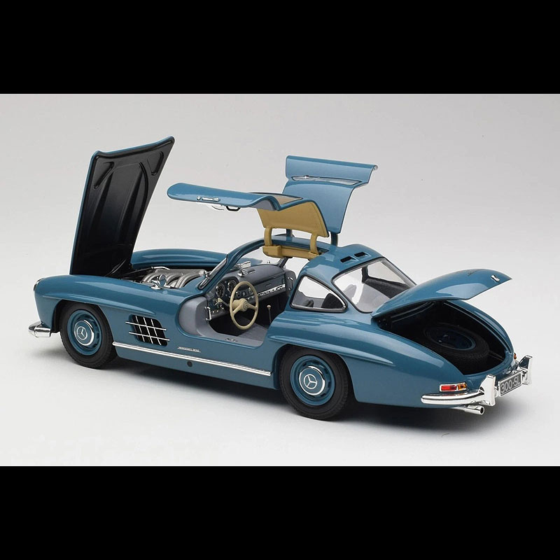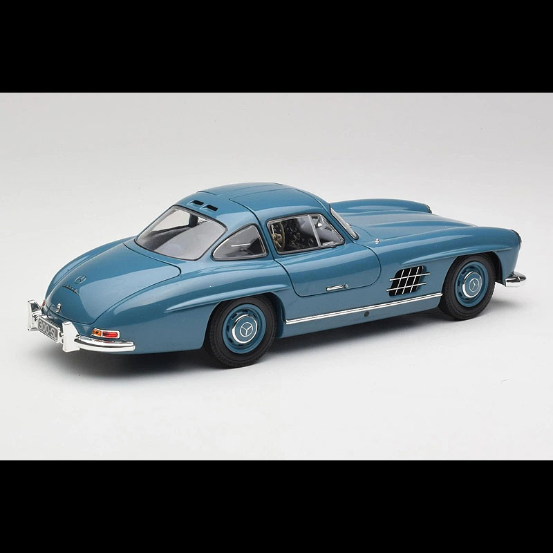 メルセデスにとってもっともエポックメーキングな車、1952年発表し5大レースで活躍、2996cc、ドアが上に跳ね上がるガルウィング式で有名になった。