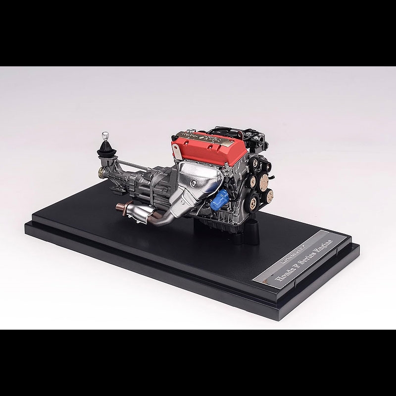 1999年にデビューしたホンダのS2000に搭載されたFシリーズエンジンのF20C型を1/18スケールモデルで再現。トランスミッション一体型で、赤いヘッドカバーや繊細なパーツまで精密に再現されており、コレクターズアイテムとしても圧倒的な存在感を放ちます。ホンダの技術力を体感できる逸品です。