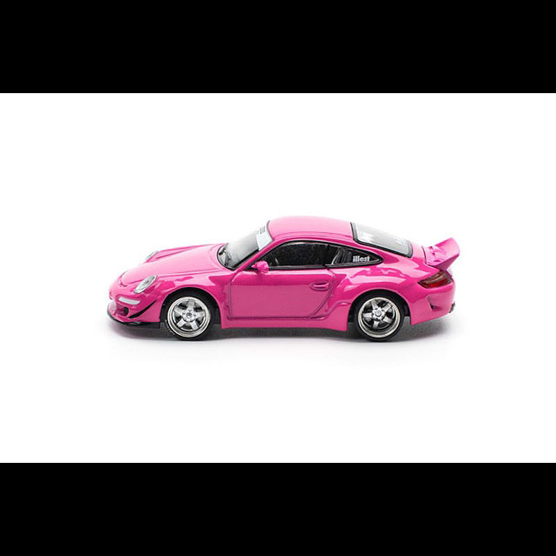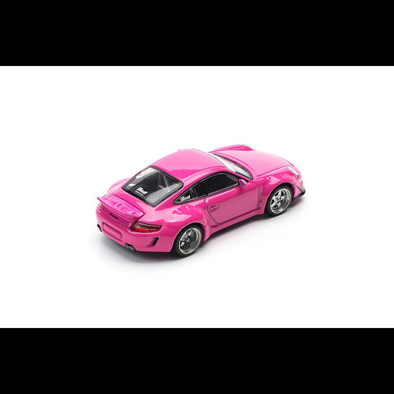 RWBのスーパーワイドボディキットを装着した997を1/64スケールで忠実に再現したダイキャスト製モデル。ビビッドなピンクカラーのボディが特徴的で、迫力あるワイドフェンダーやエアロパーツも細部まで精密に表現。