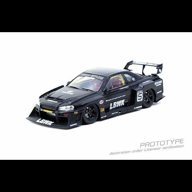 リバティーウォークの「LB-ER34 Super Silhouette SKYLINE」をダイキャスト素材でモデル化。LB専用スーパーシルエットエアロパーツにGTウィング、ローダウンを再現。マーク類はタンポ印刷とデカールで再現しました。専用ディスプレイケース付き。