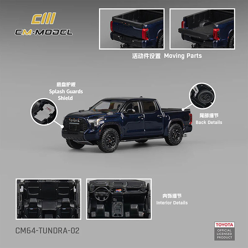 CM-MODEL(CMモデル)、スケール1/64(全長9cm)、パッケージ(6cm×12cm×5cm)、メタリックブルー、ITEM#CM64-TUNDRA-02