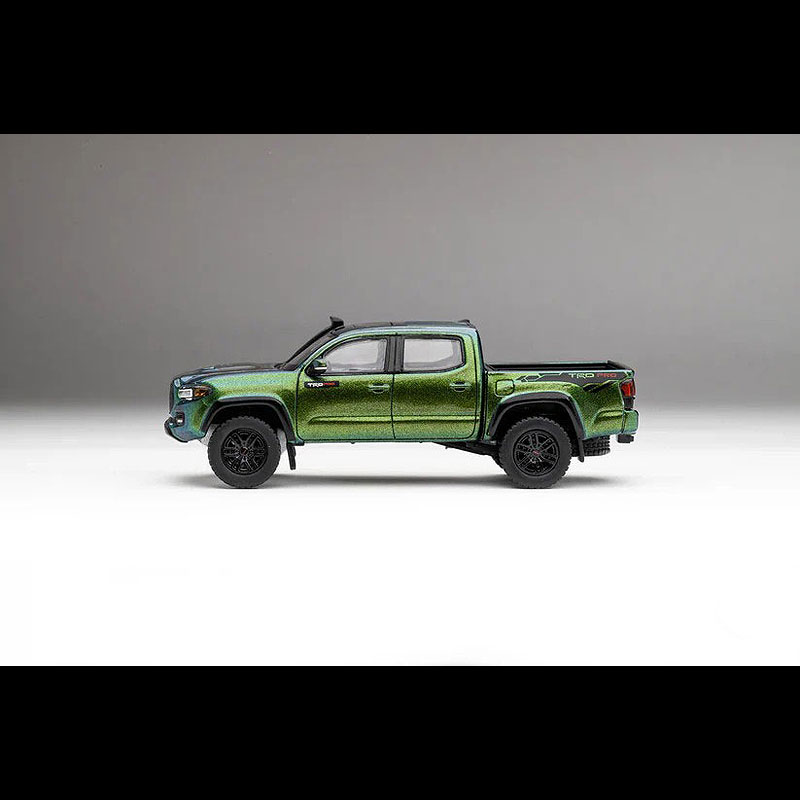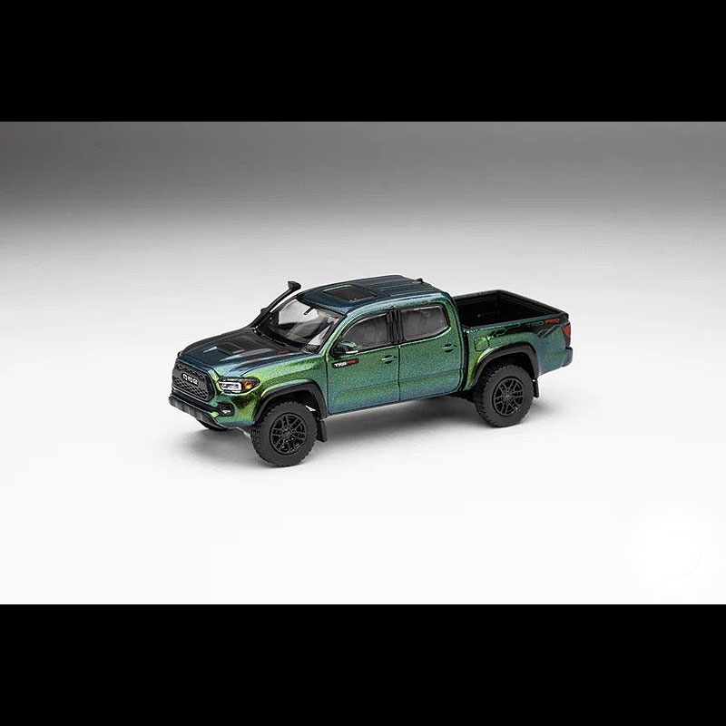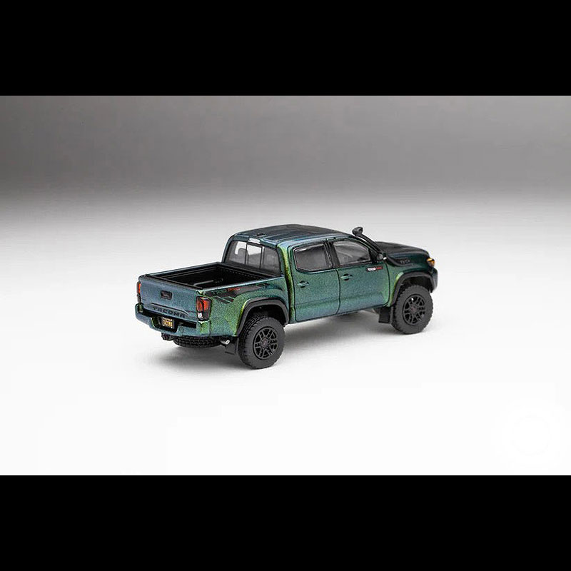 Tacoma TRD PROの魅力を高い造形力で再現したDiecastTalk特注モデル。力強いスタンスとオフロード志向のディテールにより、実用性と迫力を兼ね備えた仕上がりとなっています。深みのあるMagic Greenのボディカラーが、アウトドアテイストとミリタリー感を演出。