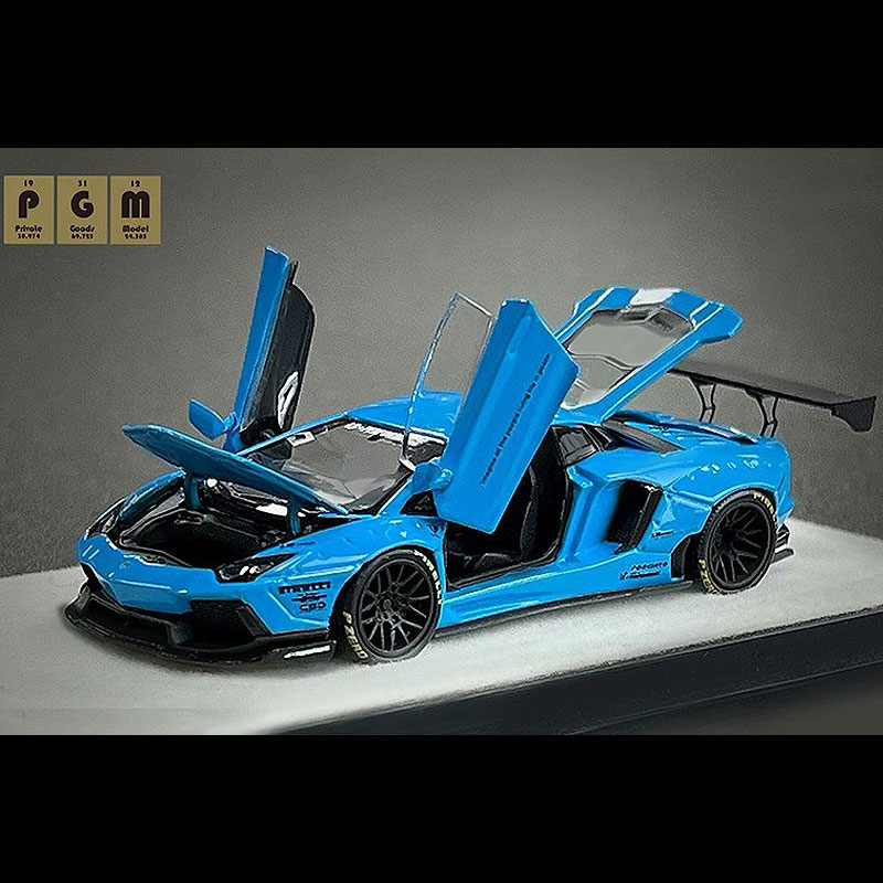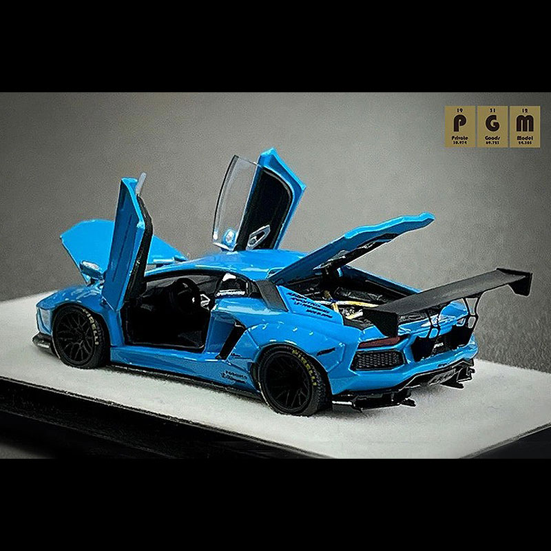 LBWK(リバティウォーク)の人気車両、ブルーカラーのデモカー「LP700-4」をダイキャスト素材でモデル化しました。ボンネット、左右ドア、エンジンフード開閉可能。内装の細部、エンジンに至るまで、スケールを超えたディティールをお楽しみいただけます。車体全長 約70mm。専用ディスプレイ台座にケースカバー、シリアルナンバーを刻印したアルミプレート付です。