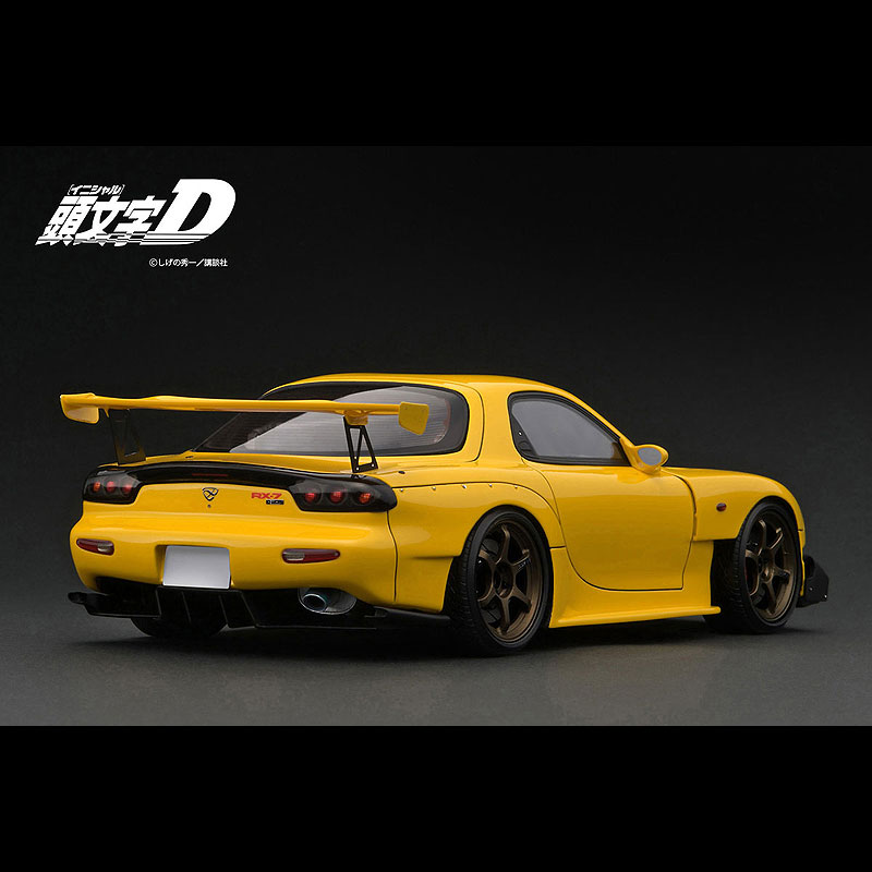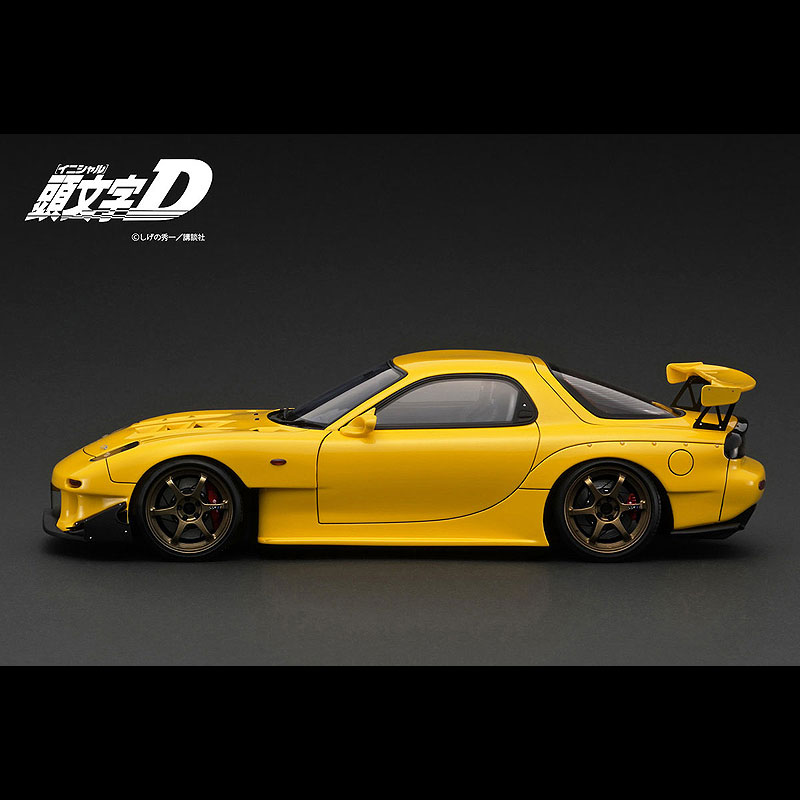 コミックス版「頭文字D」に登場する高橋啓介が駆る愛車「RX-7 (FD3S) 」をレジンモデルで再現。SSR Type-Cタイプ18インチホイール(ブロンズ)にローダウン仕様。RE雨宮タイプエアロパーツ(フロントバンパー、サイドスカート、リヤバンパー)にGTウィング、大径マフラー、エアロミラー、バケットシート、後部にロールバー、専用ステアリングを装着。製品には車両のオーナー「高橋啓介」のフィギュアを付属。パッケージの背景紙にはコミックス版に登場したワンシーンをプリントした限定バージョンです。車両と同スケールのフィギュアが付属した「RX-7 (FD3S)」をお楽しみください。