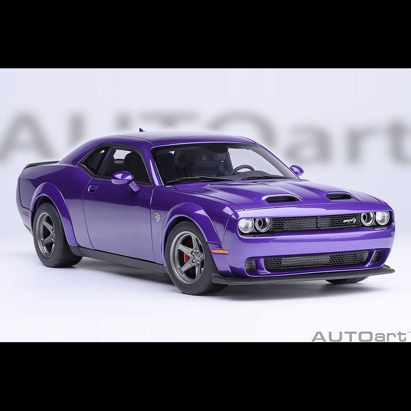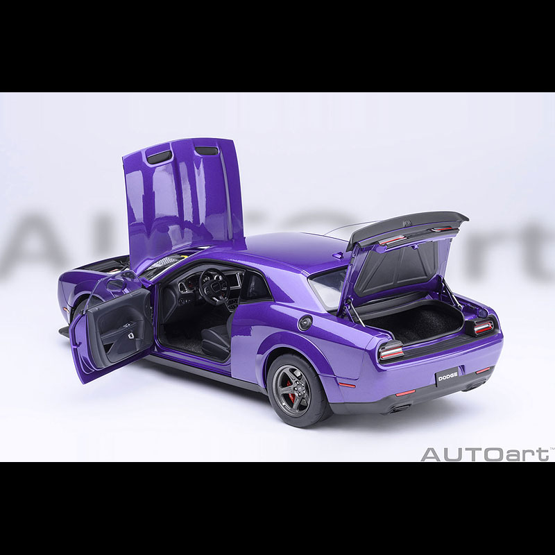 AUTO ART、スケール1/18(全長24cm)、パッケージ(16.5cm×32.5cm×14cm)、パールパープル(PLUM CRAZY)、ドア/エンジンルーム開閉可、ITEM#71768