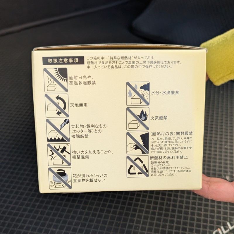 特殊な断熱材で食品を包んでいる為、温度の上昇・下降を抑え、夏場の高温環境下などでも、食品の劣化を防ぎます。